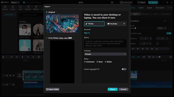Yes, CapCut facilitates you to save multimedia files on your computer without showcasing its watermark or logo. This option is available on both free and paid versions.